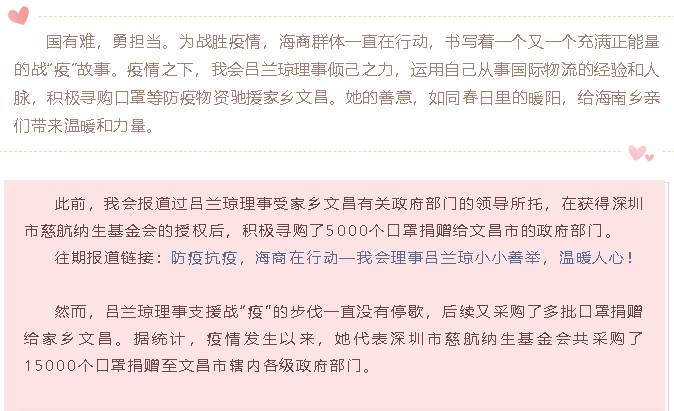 ———↓后續(xù)報(bào)道|防疫抗疫,海商在行動(dòng)——我會(huì)呂蘭瓊理事傾己之力,尋購(gòu)防疫物資馳援海南鄉(xiāng)親!↓———